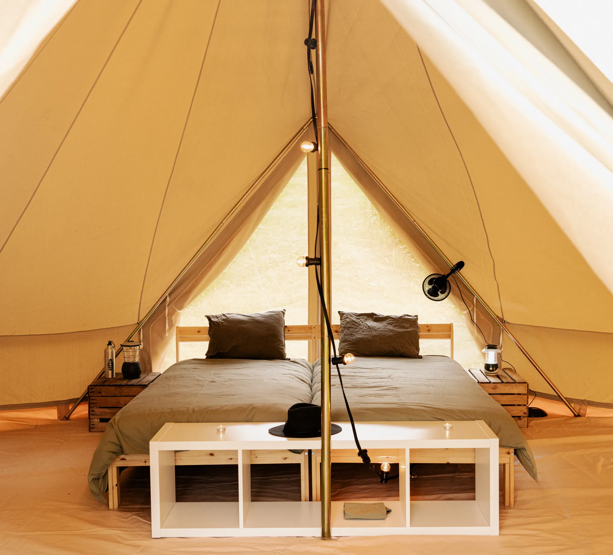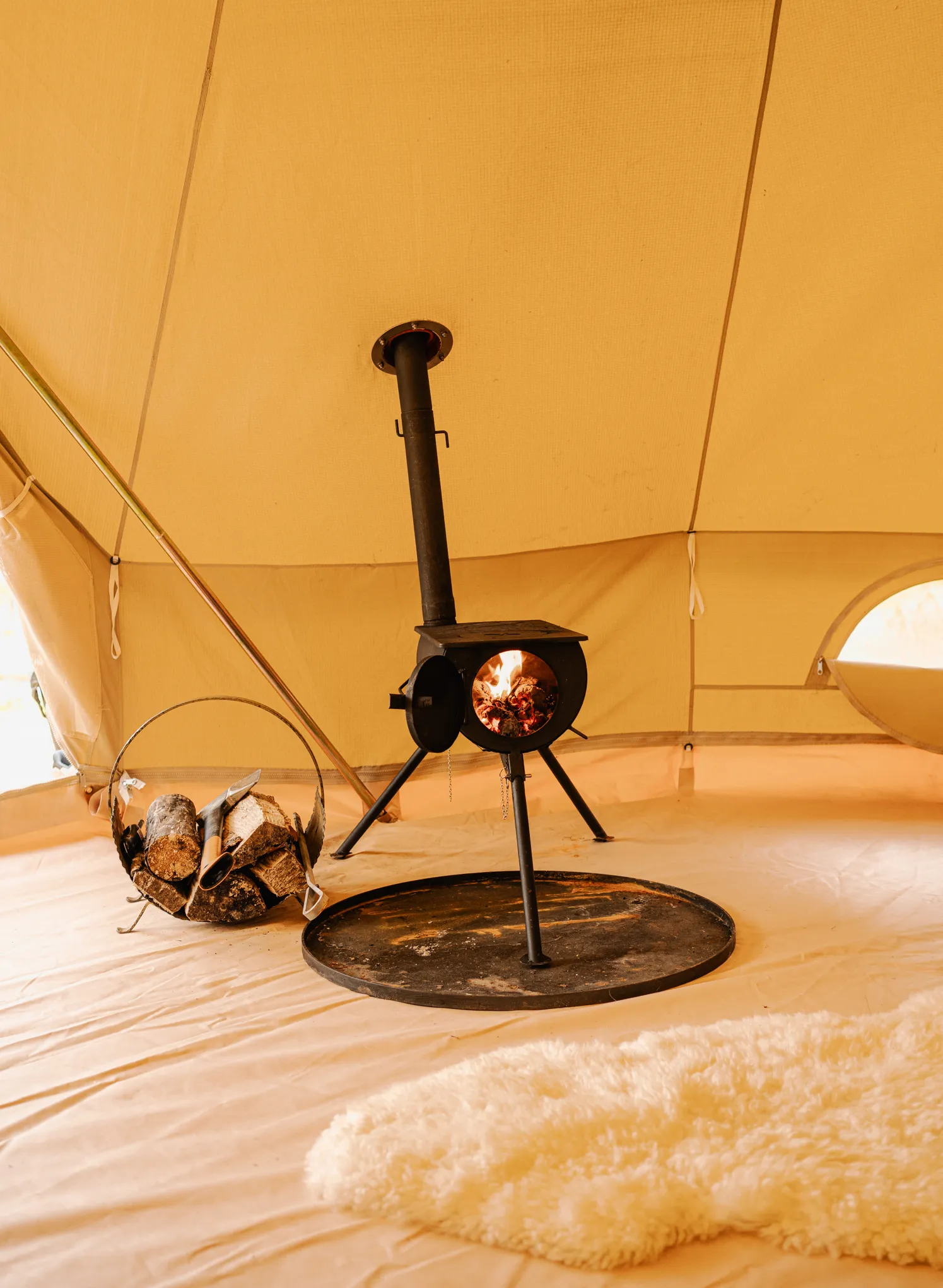 Our cosy glamping tent is build on a wooden platform and well located at the campsite.Note:Check in: after 14:00Check out: before 11:00You will find:✅ bed sheets, pillow cases and blanket covers provided✅ electricity✅ a fire place with wood
